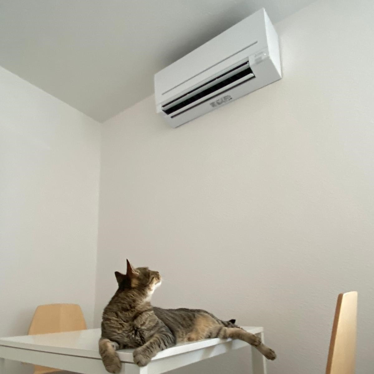 In der Hauptrolle Gin a.k. Hauskatze 😄 in der Nebenrolle der komische Kerl mit der Plastiktüte 😂 Wartung und Reinigung eines Wandklimagerätes dank der Produkte von @aspenpumpsgroupde ein Genuss 👌Brauchen auch ihre Geräte eine gründliche Reinigung dann sind wir der richtige Ansprechpartner🧽🧼 #hvac #airconditioningsystems #mitsubishielectric #kältetechniker #klimageräte #sauber #handwerk #langklima